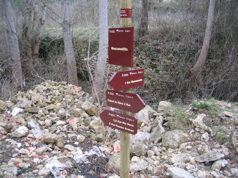 Desde Manzanedillo, otro cartel nos anima a continuar hasta Manzanedo a 1 Km siguiendo la señalización existente, y desde el que luego podremos regresar a Cidad por la carretera que une Manzanedo y Cidad de Ebro. El mismo poste ofrece la posibilidad de continuar el GR99 hacia Puente Arenas (8 Km) por Río Seco (5,5 Km). Si no, podemos regresar a Cidad desandando el camino o bien por el antiguo Camino Real, hoy, carretera que une Manzanedillo con Cidad de Ebro.