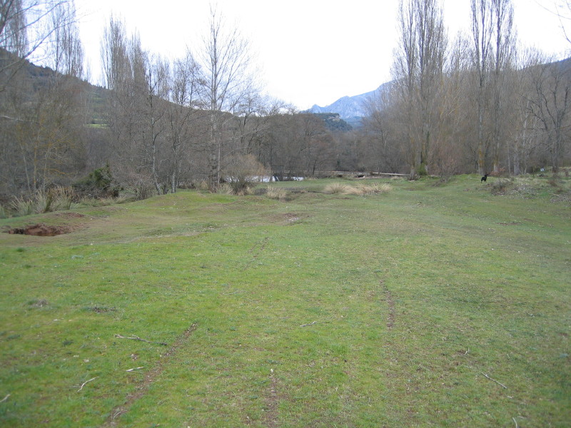 Otra vez con el río como compañero, el camino discurre hasta llegar a un punto donde el camino da paso a una campa desde la que se divisa el pueblo de Manzanedillo,con su puente sobre el Ebro y que próximamente creemos que va a ser reformado tras los daños sufridos en la ultima crecida del río Ebro.