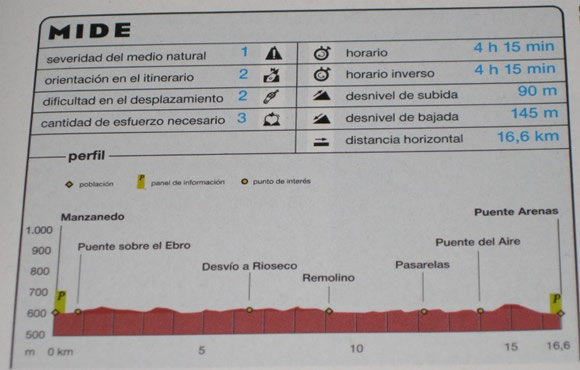 Desde Manzanedo (625 m) es necesario bajar de nuevo al puente sobre el Ebro (1km ; 15 min). Sin entrar en Manzanedillo se toma el vial de la izquierda, que se adentra en la ribera derecha del Ebro. Abajo, en la margen izquierda, se aprecia la central de Bocarredo y el eremitorio rupestre de San Pedro de Argés.