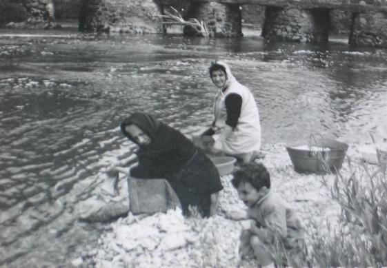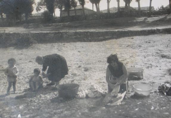 1962. Pili, Luisa y Carlos lavando en el Ebro.